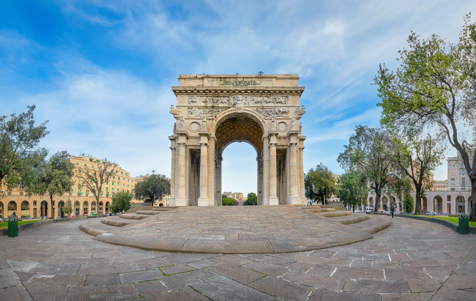 Pass ByYou then arrive at Piazza della Vittoria, dominated by the Victory Arch and landscaped gardens. The square offers a brief visual break and marks the point where the city begins to open toward the sea.