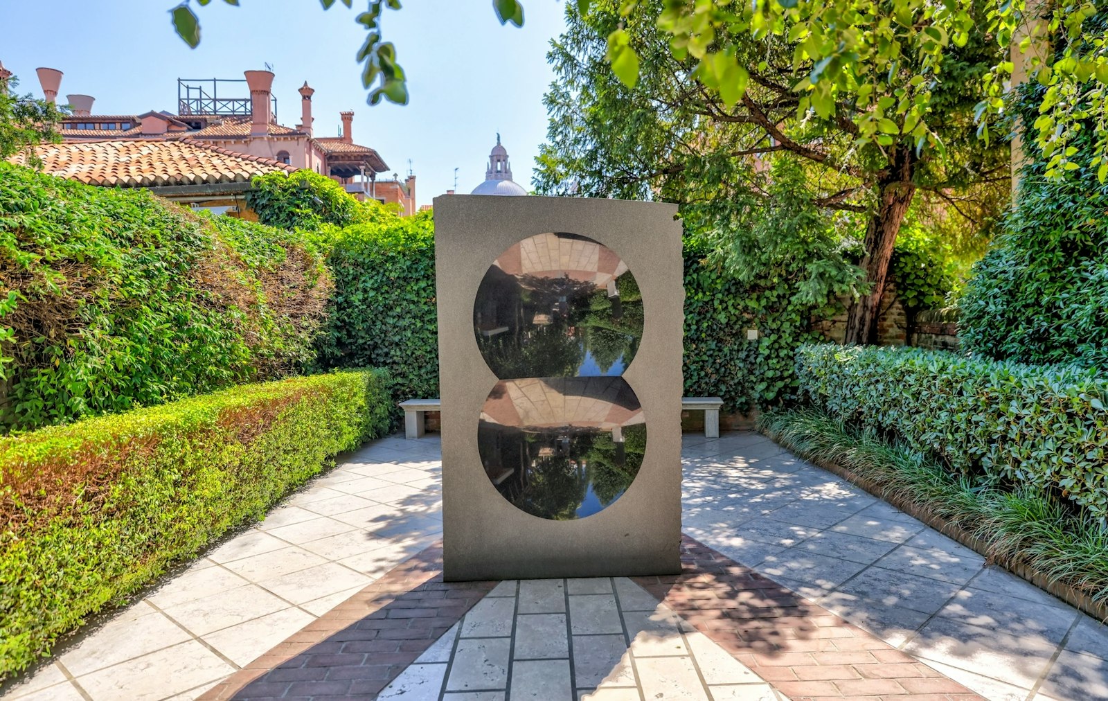 Step out into the serene sculpture garden, a peaceful oasis where works by Giacometti and Calder complement the tranquil Venetian setting.