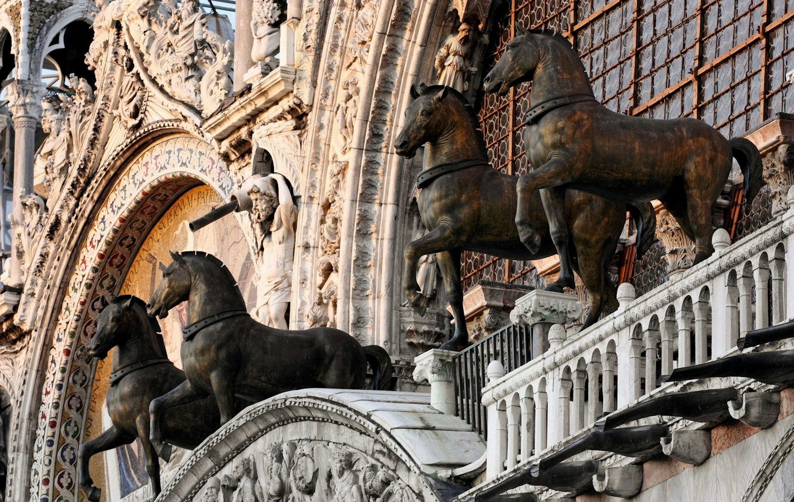 The story continues as you ascend to the Loggia dei Cavalli, the famous terrace where the legendary bronze horses stand guard over St. Mark's Square.